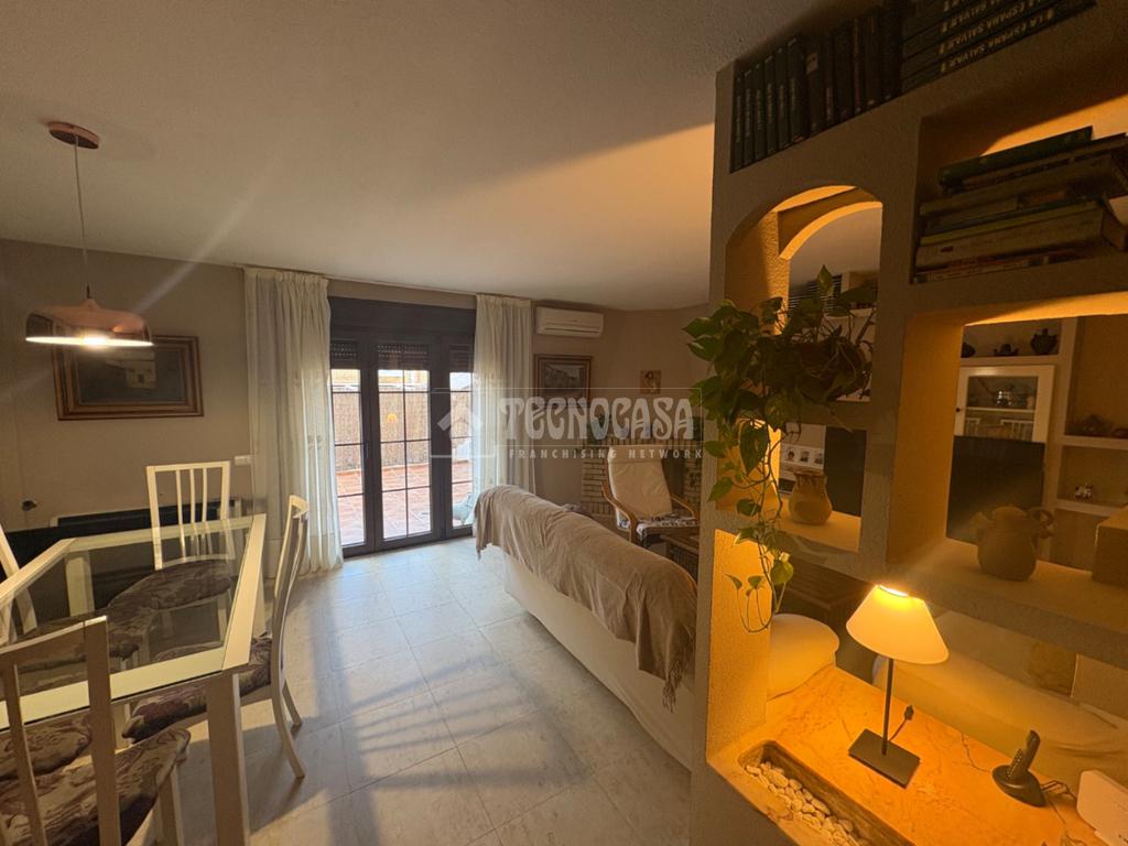 En esta planta nos encontramos además un aseo de cortesía y un salón comedor espacioso con chimenea y aire acondicionado, salida directa a un amplio patio a través de una puerta/ventana abatible recién instalada.