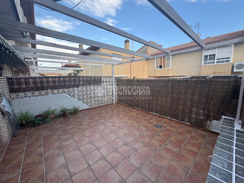 La vivienda de 180m2 cuenta con un amplio patio con vistas despejadas, pergola con toldo y garaje privado, forma parte de una comunidad con piscina y de buena construcción.